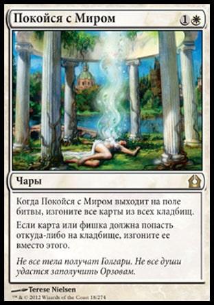 • Dredge. В первой партии мы можем выиграть за счет быстро найденной Umezawa's Jitte (любое наше умершее существо убирает из кладбища Bridge from Below). Но шансов мало, только если у Вас в мейне нет Jotun Grunt или Containment Priest. Последующие партии целиком и полностью зависят от наличия у нас карт для борьбы с вражеским кладбищем – Rest in Peace и Relic of Progenitus.