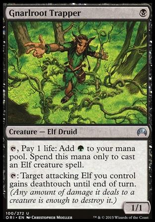 : целевой атакующий Эльф под вашим контролем получает Смертельное касание до конца хода. (Любое количество повреждений, которое он наносит существу, достаточно, чтобы его уничтожить.)