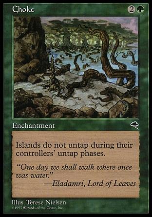 , заплатите 1 жизнь, пожертвуйте Туманную Сельву: найдите в вашей библиотеке карту Леса или Острова и положите ее на поле битвы. Затем перетасуйте вашу библиотеку.