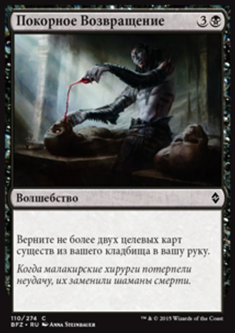 Верните не более двух целевых карт существ из вашего кладбища в вашу руку.