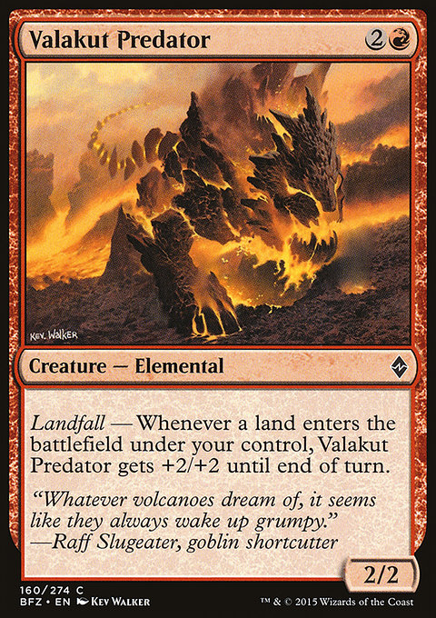 Землепад — Каждый раз, когда земля выходит на поле битвы под вашим контролем, Валакутский Хищник получает +2/+2 до конца хода.