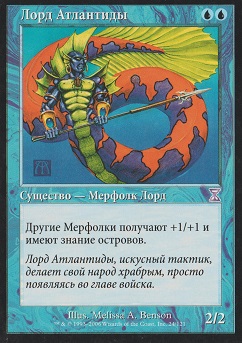 Когда Повелитель Волн выходит на поле битвы, положите на поле битвы фишки существа 1/0 синий Элементаль, количество которых равно вашей Преданности синему. (Каждый символ