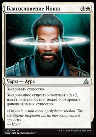 Когда Клятва Гидеона выходит на поле битвы, положите на поле битвы две фишки существа 1/1 белый Кор Союзник.