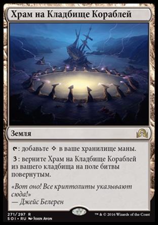 : верните Храм на Кладбище Кораблей из вашего кладбища на поле битвы повернутым.