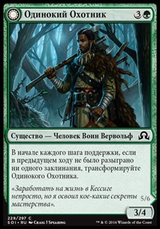 В начале каждого шага поддержки, если в предыдущем ходу не было разыграно ни одного заклинания, трансформируйте Одинокого Охотника.