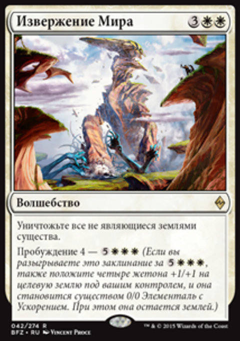 −7: разверните не более шести целевых земель. Они становятся существами 6/6 Элементаль. При этом они остаются землями.