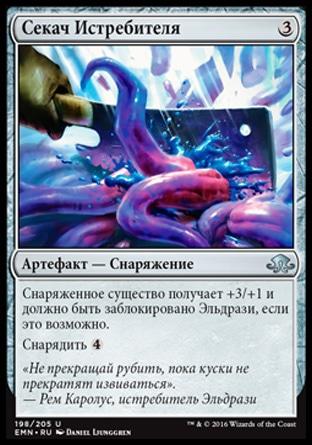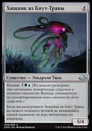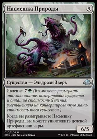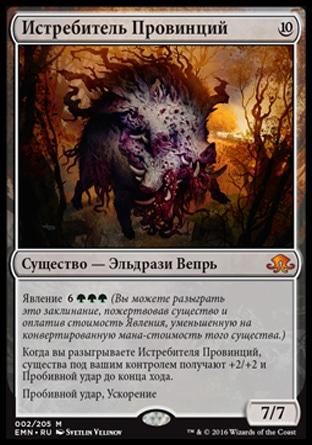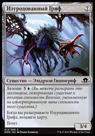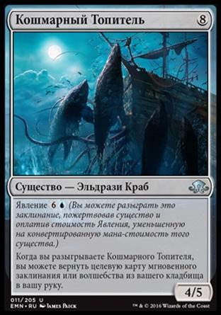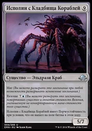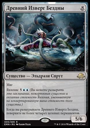 Каждый раз, когда вы разыгрываете заклинание существа-Эльдрази с конвертированной мана-стоимостью не менее 7, возьмите две карты.