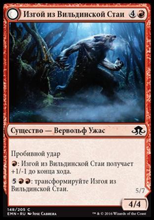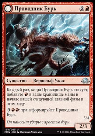 Трансформируйте не более одного целевого Вервольфа под вашим контролем. Существа под вашим контролем получают Пробивной удар до конца хода.