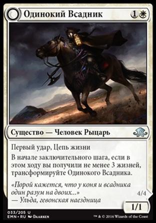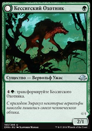 Каждый раз, когда это существо выходит на поле битвы или трансформируется в Ульриха из Кралленордской Стаи, целевое существо получает +4/+4 до конца хода.