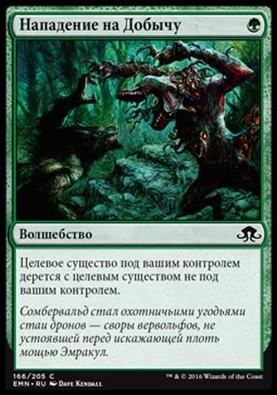 Целевое существо под вашим контролем дерется с целевым существом, не находящимся под вашим контролем. (Эти существа наносят друг другу повреждения, равные своей силе.)