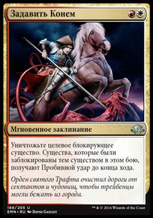 В начале вашего заключительного шага, если снаряженное существо не нанесло боевых повреждений существу в этом ходу, пожертвуйте его.