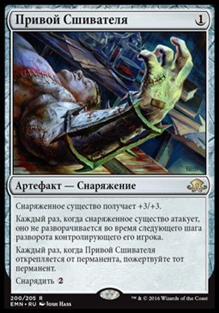 Каждый раз, когда Привой Сшивателя открепляется от перманента, пожертвуйте тот перманент.