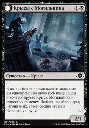 В начале боя во время вашего хода, если вы одновременно являетесь владельцем и контролируете Крыс с Могильника и существо с именем Полночные Мародеры, изгоните их, затем соедините их в Верещащую Кучу.