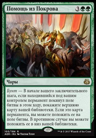 Бунт — В начале вашего заключительного шага, если находившийся под вашим контролем перманент покинул поле битвы в этом ходу, покажите верхнюю карту вашей библиотеки. Если это карта перманента, вы можете положить ее на поле битвы. В противном случае вы можете положить ее в низ вашей библиотеки.