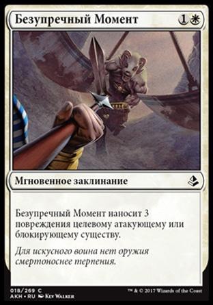 Безупречный Момент наносит 3 повреждения целевому атакующему или блокирующему существу.