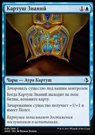 Когда Картуш выходит на поле битвы под вашим контролем, верните Испытание Знания в руку владельца.
