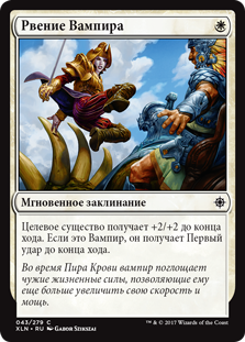 Целевое существо получает +2/+2 до конца хода. Если это Вампир, он получает Первый удар до конца хода.
