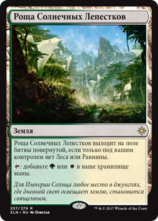 Роща Солнечных Лепестков выходит на поле битвы повернутой, если только под вашим контролем нет Леса или Равнины.