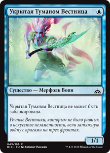 Когда Авгур-Рекознатец выходит на поле битвы, возьмите три карты, затем положите две карты из вашей руки на верх вашей библиотеки в любом порядке.