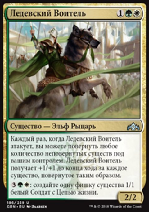 • Создайте одну фишку существа 2/2 зеленый и белый Эльф Рыцарь с Бдительностью.