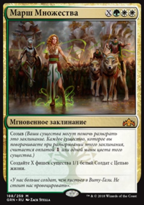 Созыв (Ваши существа могут помочь разыграть это заклинание. Каждое существо, которое вы поворачиваете при разыгрывании этого заклинания, считается оплатой