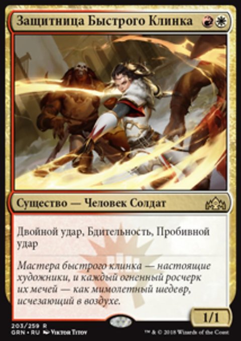 Пробивной удар (Если это существо распределяет достаточно повреждений, чтобы уничтожить блокирующие его существа, вы можете заставить его распределить оставшиеся повреждения защищающемуся игроку или planeswalker-у.)