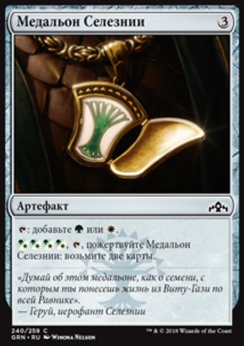 , пожертвуйте Медальон Селезнии: возьмите две карты.