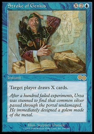 Возьмите Х карт. Если X равен 10 или больше, вместо этого втасуйте ваше кладбище в вашу библиотеку, возьмите X карт, разверните не более пяти земель, и до конца партии размер вашей руки неограничен.