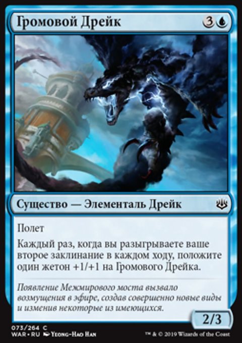 −2: создайте одну фишку существа 2/2 синий Чародей. Возьмите карту, затем сбросьте карту.