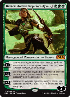 –3: целевое существо под вашим контролем наносит повреждения, равные своей силе, целевому существу или planeswalker-у.