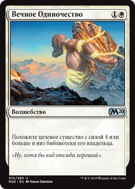 Положите целевое существо с силой 4 или больше в низ библиотеки его владельца.