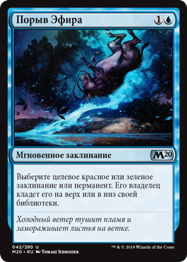 Верните все перманенты, не являющиеся землями, в руки их владельцев. Если таким образом вы возвращаете не менее четырех не являющихся фишками перманентов под вашим контролем, вы можете положить карту перманента из вашей руки на поле битвы.