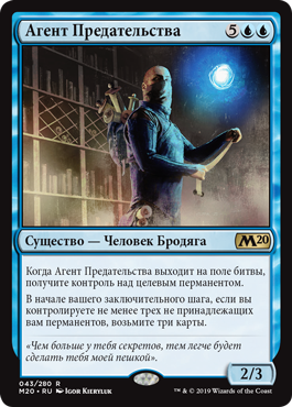 Каждый раз, когда другое синее существо выходит на поле битвы под вашим контролем, целевой игрок кладет две верхние карты своей библиотеки на свое кладбище.