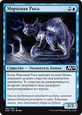 Когда Морозная Рысь выходит на поле битвы, поверните целевое существо под контролем оппонента. То существо не разворачивается во время следующего шага разворота контролирующего его игрока.