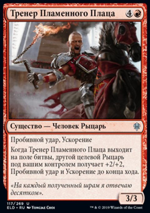 Каждый раз, когда Пылкий Поборник атакует, другой целевой атакующий Рыцарь под вашим контролем получает +1/+0 до конца хода.