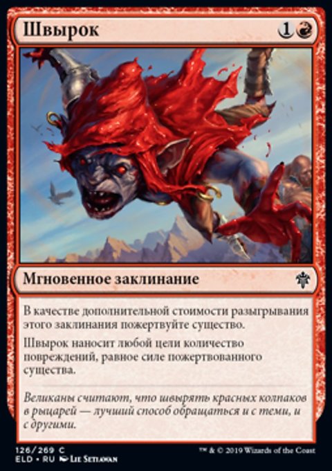 Швырок наносит целевому существу или игроку количество повреждений, равное силе пожертвованного существа.