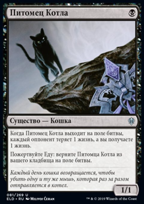 Когда Питомец Котла выходит на поле битвы, каждый оппонент теряет 1 жизнь, а вы получаете 1 жизнь.
