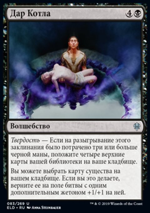 Твердость — Если на разыгрывание этого заклинания было потрачено три или больше черной маны, положите четыре верхние карты вашей библиотеки на ваше кладбище.