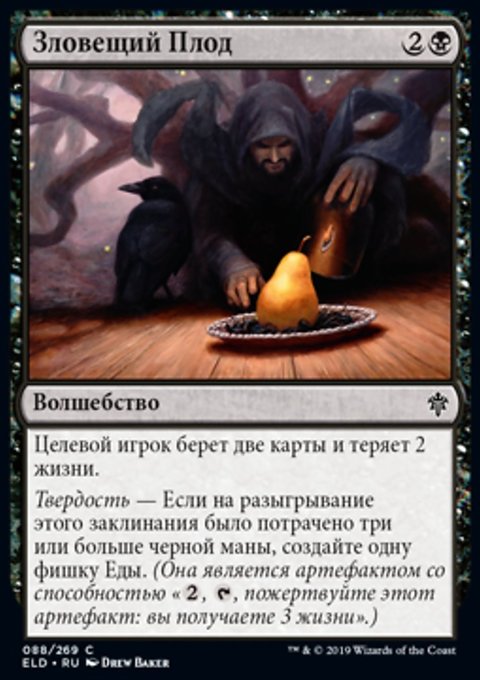 Твердость — Если на разыгрывание этого заклинания было потрачено три или больше черной маны, создайте одну фишку Еды. (Она является артефактом со способностью «