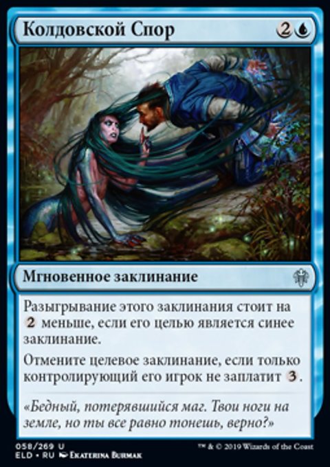 Каждый раз, когда вы разыгрываете синее заклинание, поверните целевой не являющийся землей перманент под контролем оппонента.