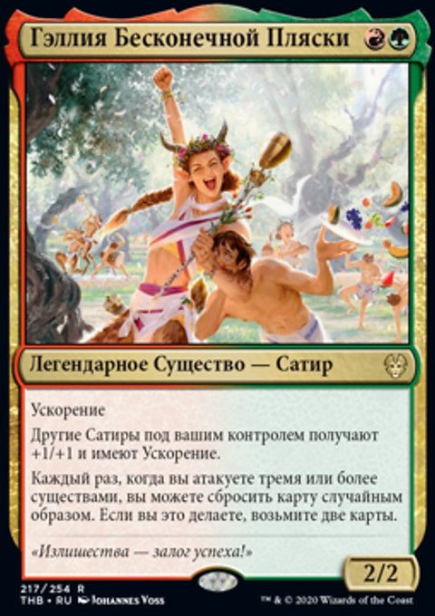 Другие Сатиры под вашим контролем получают +1/+1 и имеют Ускорение.