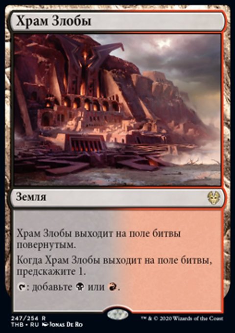 Когда Храм Злобы выходит на поле битвы, предскажите 1. (Посмотрите верхнюю карту вашей библиотеки. Вы можете положить ту карту в низ вашей библиотеки.)