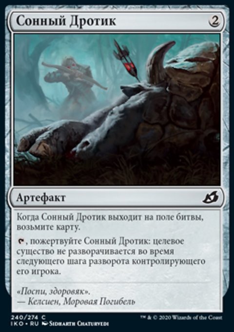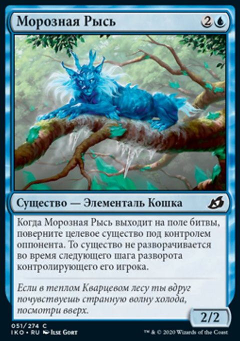 Когда Морозная Рысь выходит на поле битвы, поверните целевое существо под контролем оппонента. То существо не разворачивается во время следующего шага разворота контролирующего его игрока.