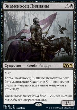 Когда Знаменосец Лилианы выходит на поле битвы, возьмите X карт, где X — количество существ, умерших под вашим контролем в этом ходу.