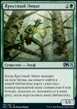Предскажите 3, затем покажите верхнюю карту вашей библиотеки. Если это карта существа или земли, возьмите карту. (Чтобы предсказать 3, посмотрите три верхние карты вашей библиотеки, затем положите любое количество из них в низ вашей библиотеки, а остальные на верх вашей библиотеки в любом порядке.)