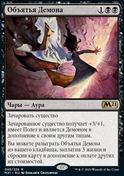 Вы можете разыграть Объятья Демона из вашего кладбища, заплатив 3 жизни и сбросив карту в дополнение к оплате других их стоимостей.